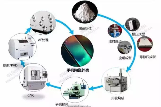 氧化鋯陶瓷手機(jī)背板的制備主要包括氧化鋯陶瓷粉體的制備、成型、燒結(jié)、研磨拋光處理等流程。其中氧化鋯陶瓷粉體的制備是整個(gè)流程中最重要且技術(shù)難度最大的部分。